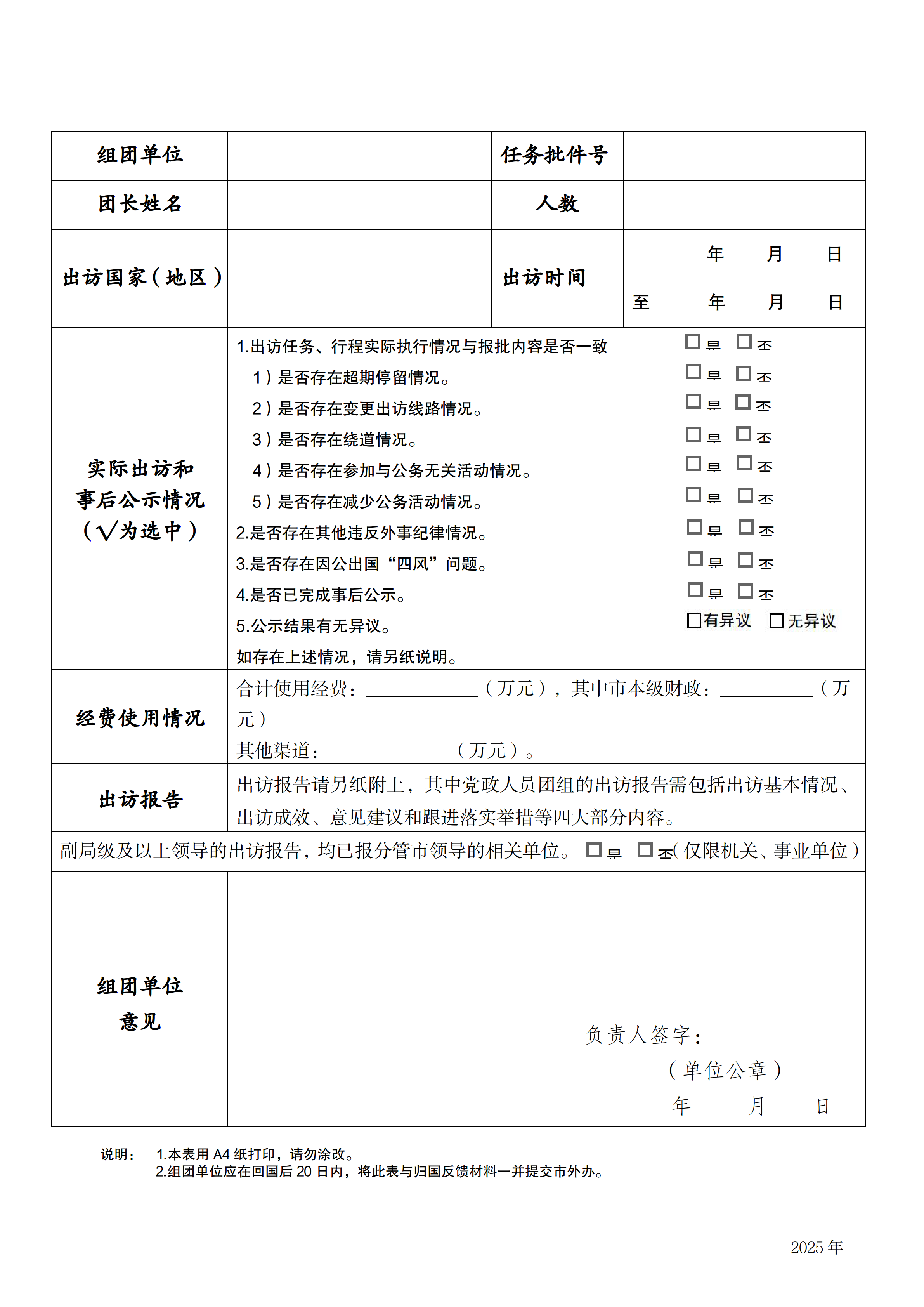 出国团组归国反馈表